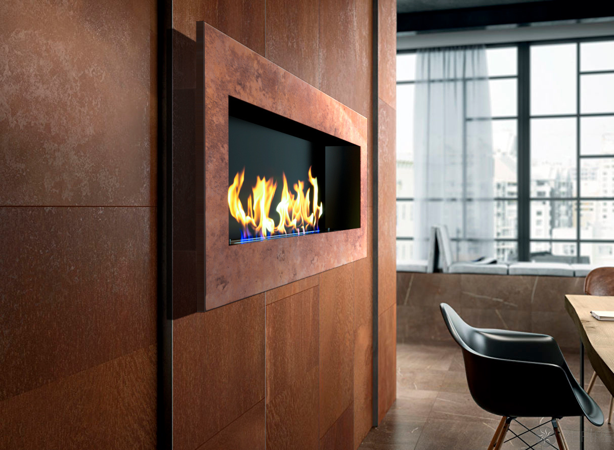 Настенный / встраиваемый биокамин Elliot 1800 Loft — это эксклюзивная модель из лимитированной коллекции. Широкая рама очага выполнена из легированной стали CorTen, или COR-TEN, — материала, который быстро набирает популярность в архитектуре и дизайне интерьеров. Эффектная ржавая поверхность на самом деле практически не подвержена атмосферной коррозии. Поэтому огненный декор из легированной стали можно устанавливать не только в квартире или частном доме, но и на улице, например, на крытой веранде.