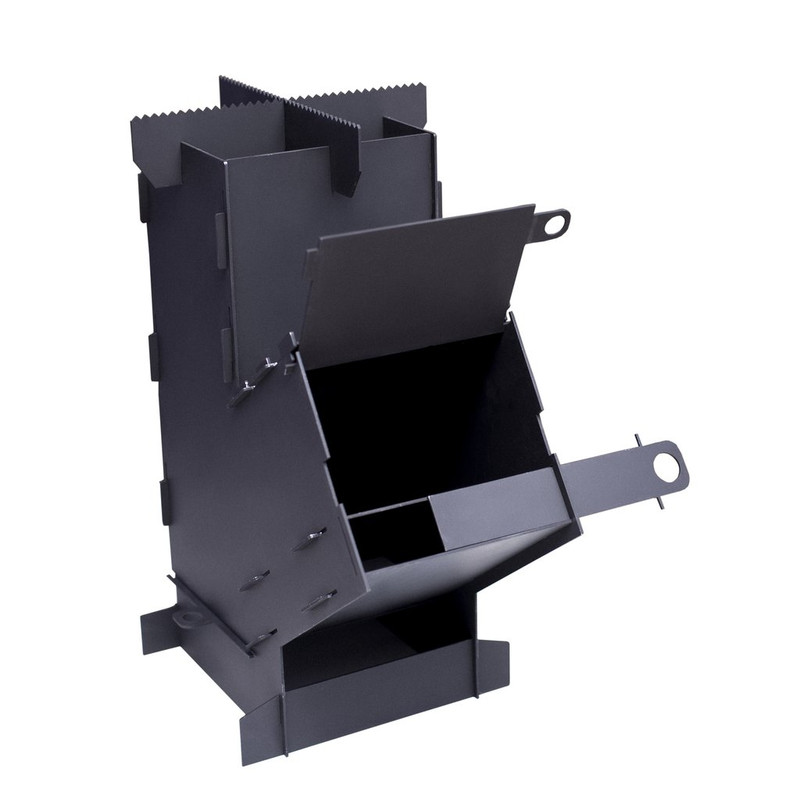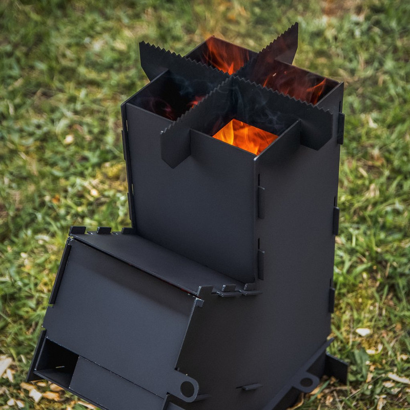 Печь-ракета – это переносная компактная печь, используемая для приготовления пищи и согрева воды в походе, на рыбалке, пикнике или охоте.