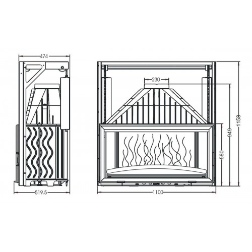 Современный дизайн позволит вмонтировать данную топку не только в облицовку, реализуя запросы самых неприхотливых интерьеров. Так же эта топка идеально подойдет для обогрева коммерческих помещений.