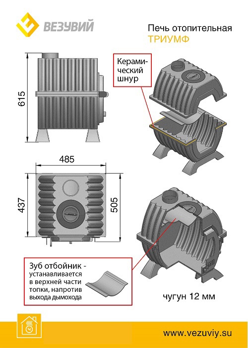 Топка состоит из двух чугунных элементов толщиной не менее 12 мм.