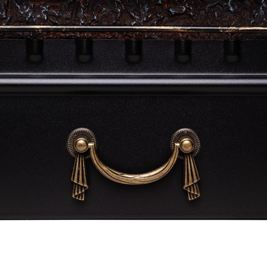 Электрический очаг Majestic Lux предназначен для встраивания в стандартные обрамления. Нагреватель с поддувом спрятан в козырьке очага и обеспечивает обогрев в прохладную погоду. Переключатель позволяет использовать два уровня мощности. В режиме визуализации пламени потребление электроэнергии составляет 80 Вт (две свечеобразные лампы E14 мощностью 40W).