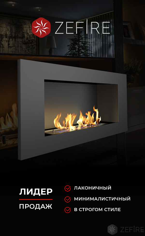 Черный Elliot 900 от российской торговой марки ZeFire – лаконичная и стильная модель встраиваемого настенного биокамина, которая будет одинаково удачно смотреться в современном и классическом интерьере. Такой биокамин не занимает в помещении лишнего пространства, потому подойдет даже для небольших площадей. Его монтаж не требует устройства дымохода или вытяжки и может выполняться без специальных разрешений.
