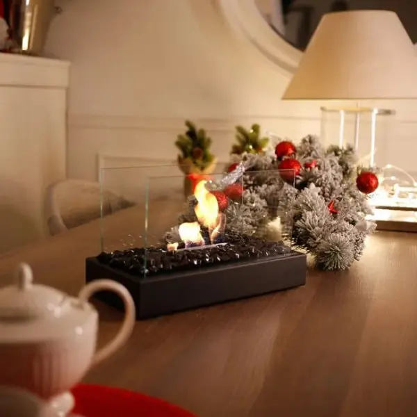 Отдельно стоящий биокамин простой, элегантной формы. Настольный. В благоприятных погодных условиях это может быть украшением террасы или сада.