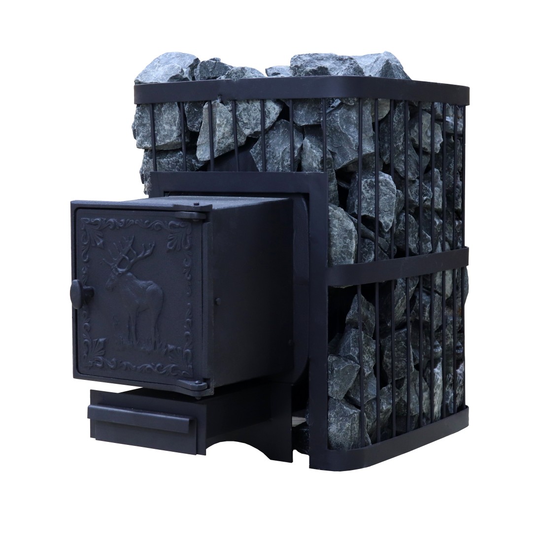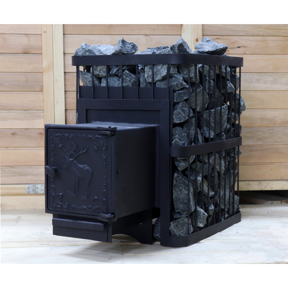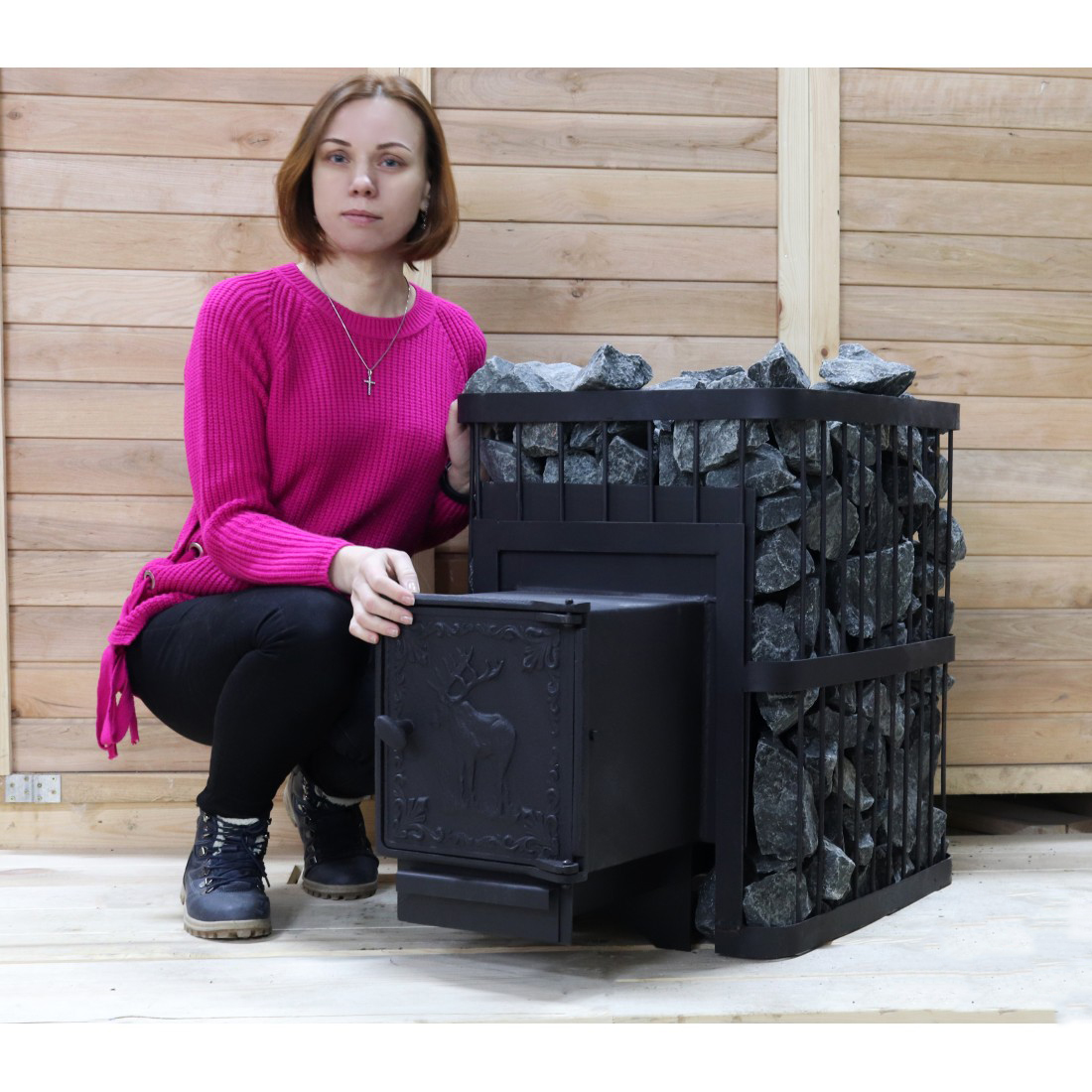 Печь банная ComfortProm ОПТИМАЛЬНАЯ УСИЛЕННАЯ 3 мм, для парной до 16 кубов, вес 56 кг, длина дров до 30 см, на 130 кг камней, чугунная дверь.