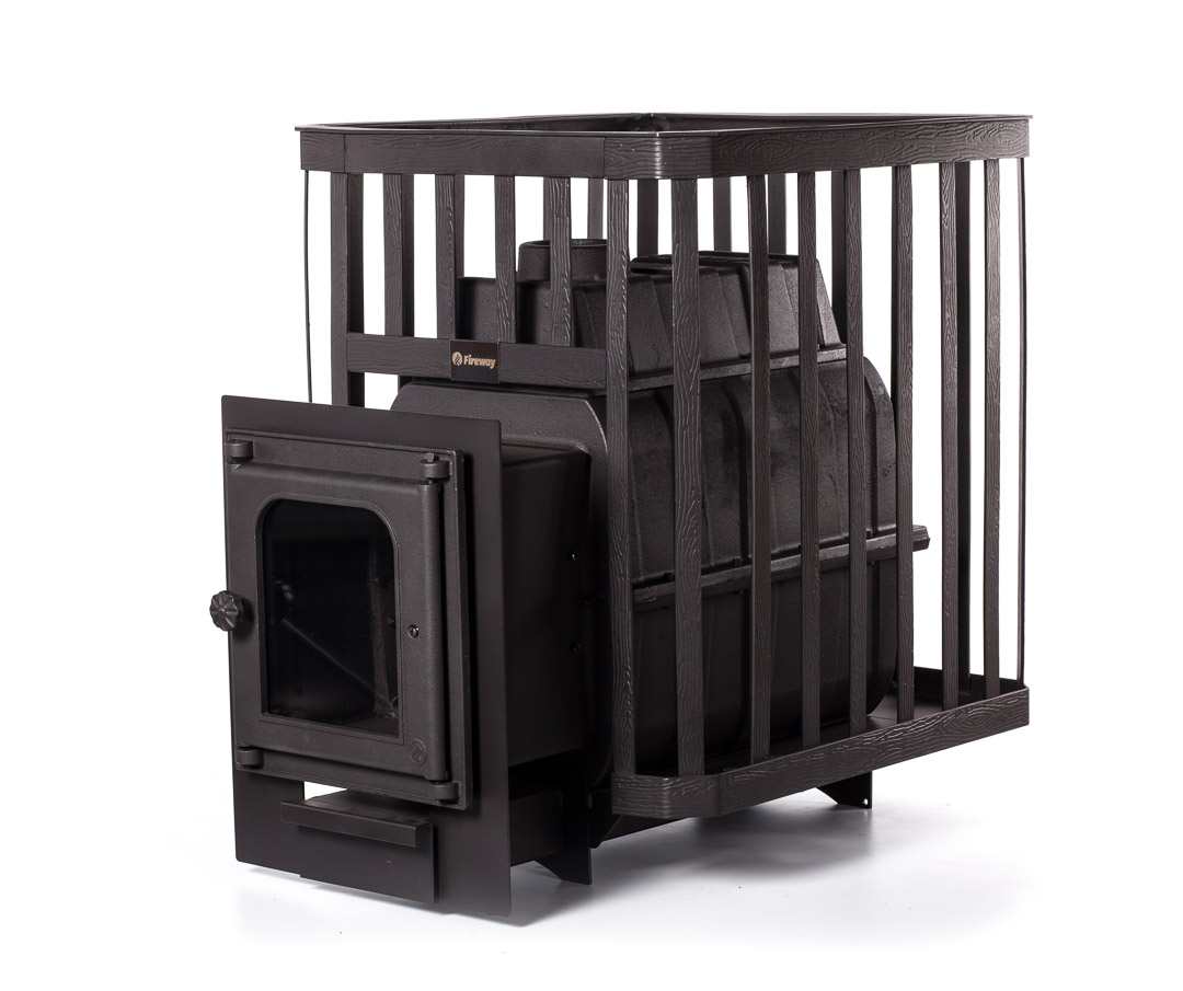Печь предназначена для отопления парильных помещений объемом 14-24 куб. м. Топка печи чугунная. Выносной канал 20 см для топки печи из смежного помещения. Топочная дверца чугунная стандартная К302 Fireway, размер 310х340 mm. Загрузка дров фронтальная. Диаметр дымохода 115 мм. Расположение дымохода - сверху. Отделка антрацит. Размер стекла 192х210х4 mm. Гарантия 5 лет.