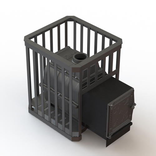 каменка выполнена в виде сетки – используется кованая сталь, что придает конструкции необходимую жесткость и устойчивость;