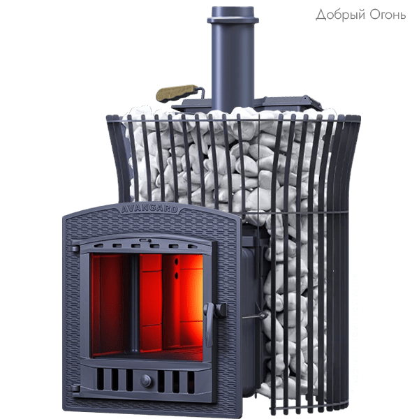 Масса пароиспарителя в печи AVANGARD 25– 42 кг, и он нагревается прямым контактом с пламенем. У пароиспарителя 2 поверхности с увеличенной рабочей площадью – снизу идёт нагрев огнём, а сверху поддаётся вода для пара. У печи уникальная, массивная каменка с теплонакопительными воронками, для получения легкого пара.