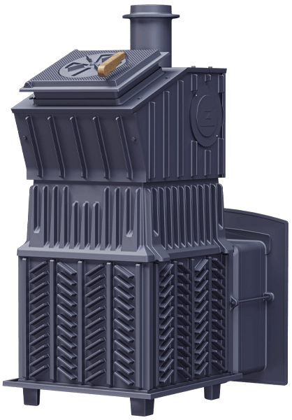 В облицовке, Дожиг дымовых газов, Выносная топка, Зольный ящик |