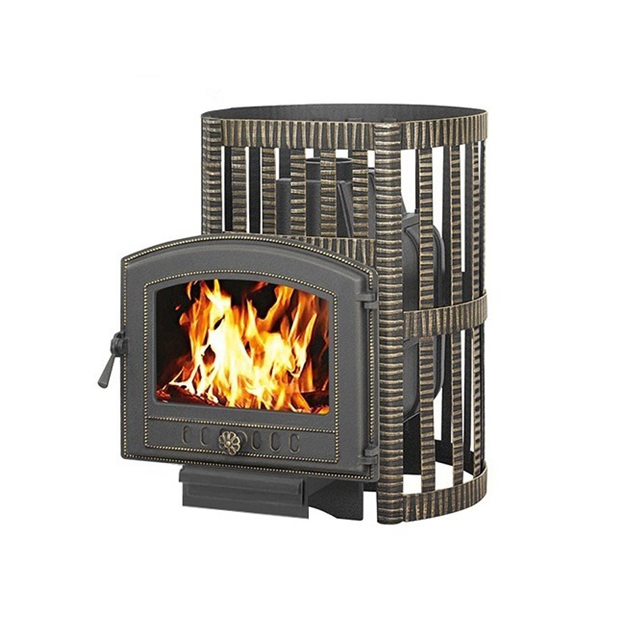 Банная чугунная печь Легенда Ковка 22 (224) укомплектована чугунной герметичной дверцей Везувий 224 с жаропрочным стеклом «SCHOTT ROBAX». Конвекционно-вентилируемый кожух «Ковка» изготовлен из металлической текстурированной полосы покрашенной термостойкой краской и покрытая патиной «Бронза».