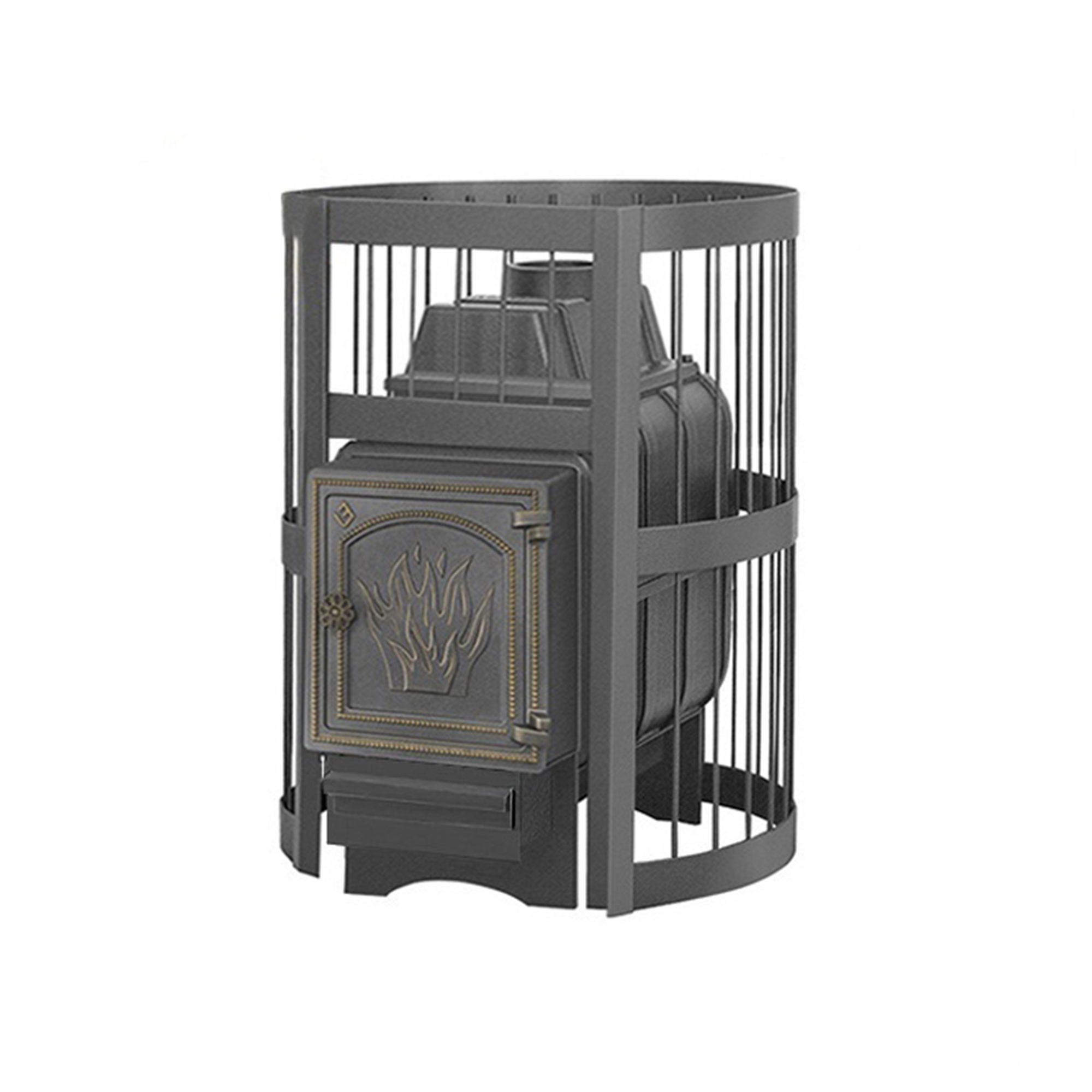 Банная чугунная печь Легенда Стандарт 22 (ДТ-4) укомплектована чугунной не герметичной дверцей Везувий ДТ-4. Конвекционно-вентилируемый кожух «Стандарт» изготовлен из металлического прутка диаметром 6 мм покрашенной черной термостойкой краской.