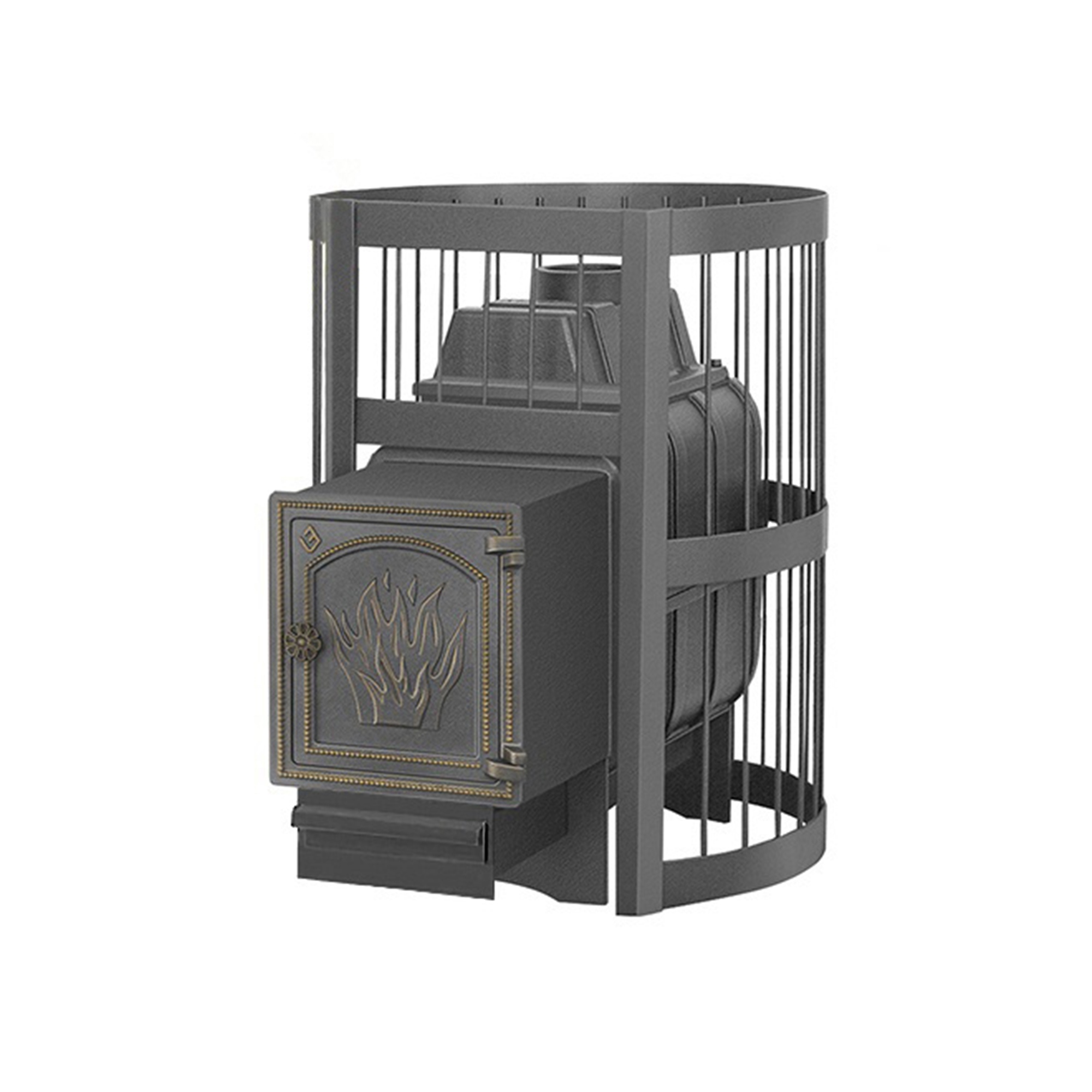 Банная чугунная печь Легенда Стандарт 22 (ДТ-4) укомплектована чугунной не герметичной дверцей Везувий ДТ-4. Конвекционно-вентилируемый кожух «Стандарт» изготовлен из металлического прутка диаметром 6мм покрашенной черной термостойкой краской.