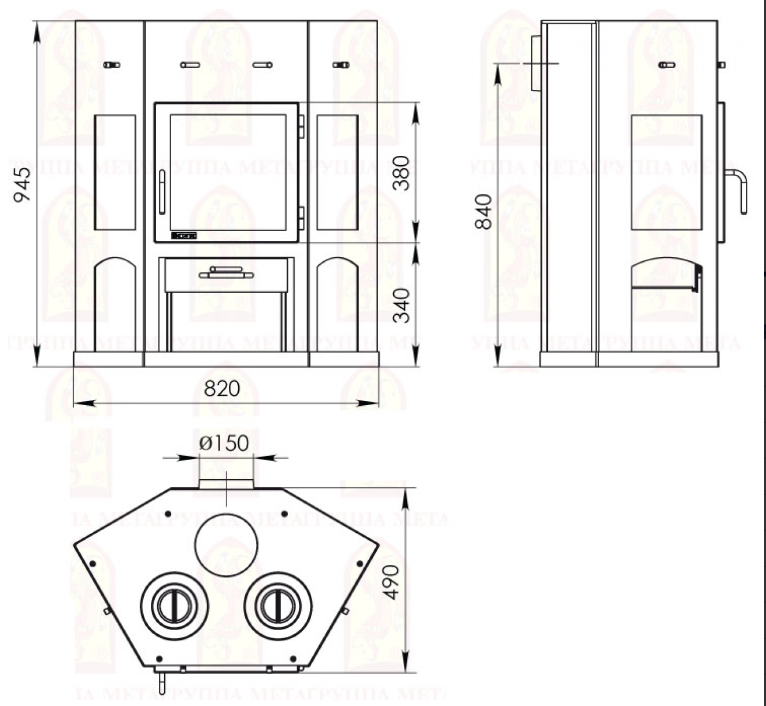 Печь-камин Метабел АОТ 11.0 (в модификации "Енисей, с плитой")