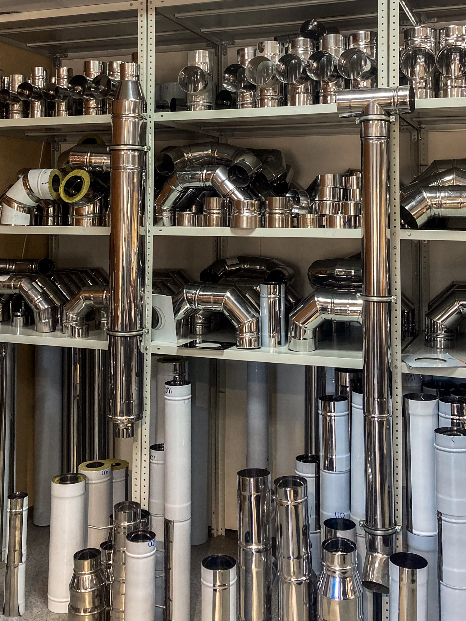 Собственное производство элементов дымоходов из нержавеющей стали, включая сертифицированные сэндвич-дымоходы из нержавеющей стали.