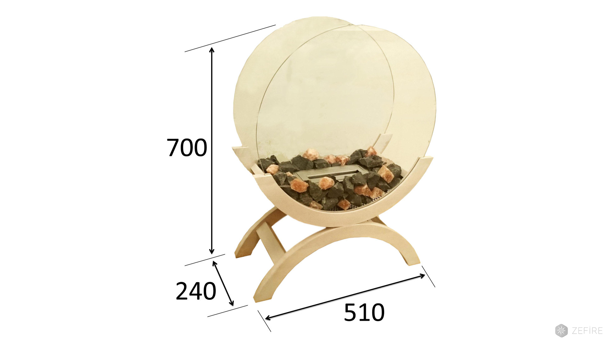 Экологичность и безопасность модели подчеркивает присутствие в ее конструкции природных материалов. Остов биокамина выполнен из натурального бука, который может быть окрашен в любой цвет из палитры TIKKURILA. Пространство вокруг топливного блока заполнено камнями.
