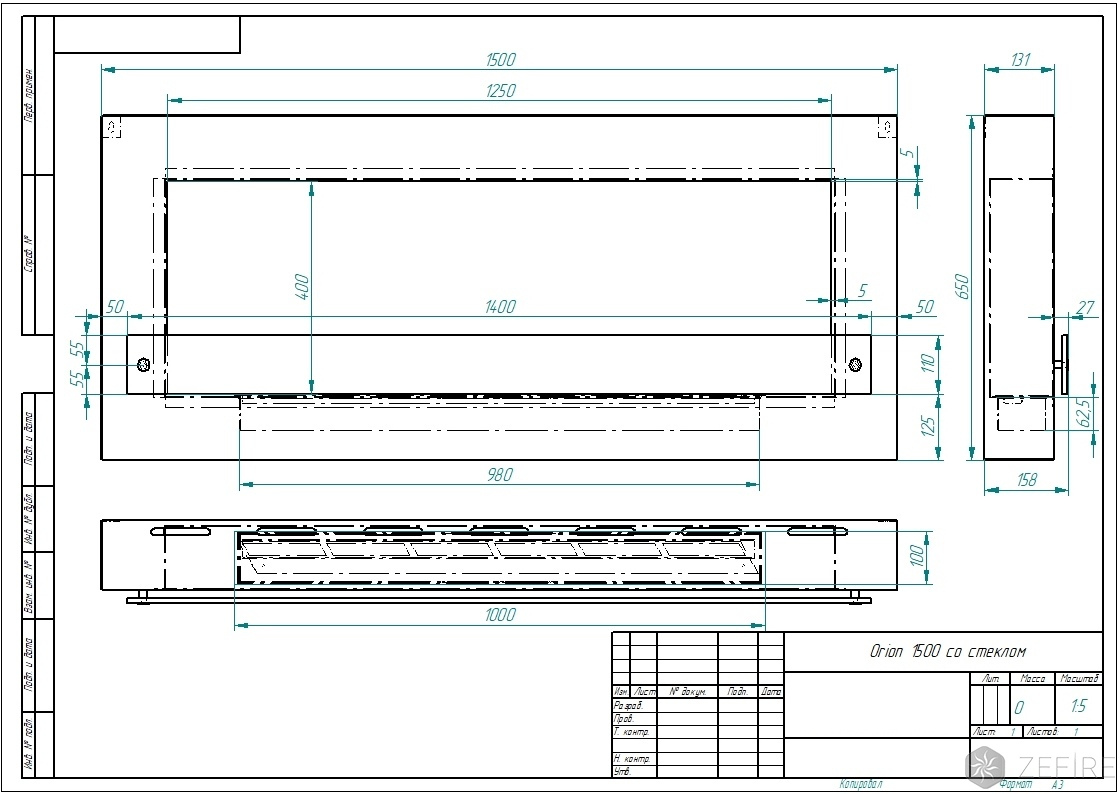 Биокамин ZeFire Orion 1500 со стеклом