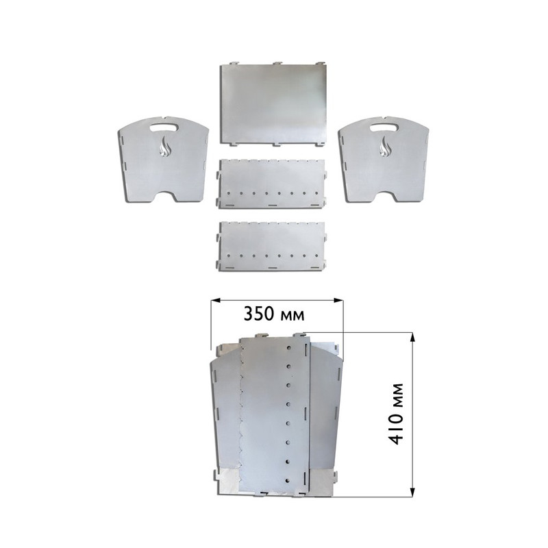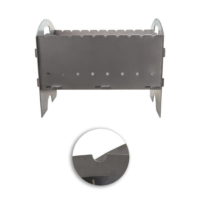 Мангал состоит всего из 5 деталей, элементарно собирается и разбирается и в собранном виде занимает минимум места.