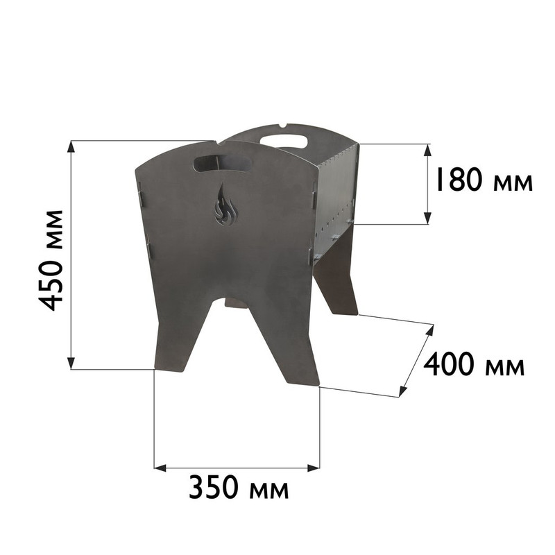 Мангал состоит всего из 5 деталей, элементарно собирается и разбирается и в собранном виде занимает минимум места.