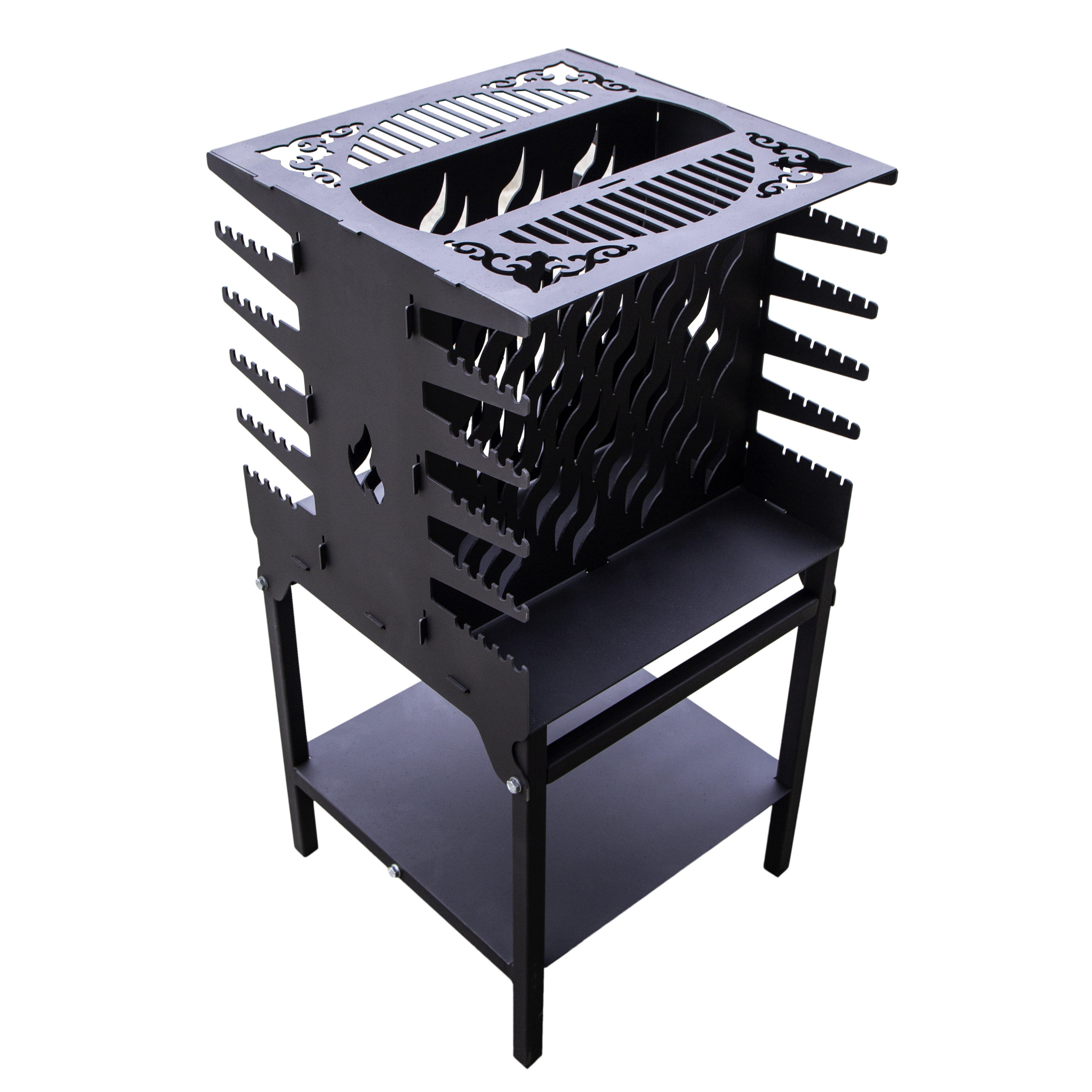 Внизу мангала находится удобная полка для хранения дров.