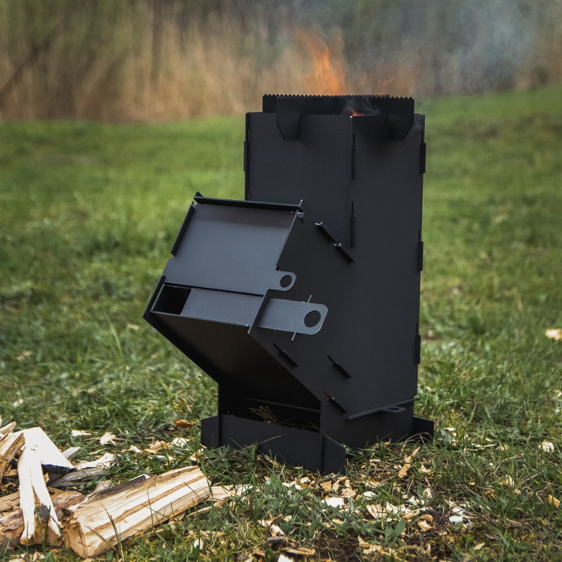 Печь-ракета – это переносная компактная печь, используемая для приготовления пищи и согрева воды в походе, на рыбалке, пикнике или охоте.